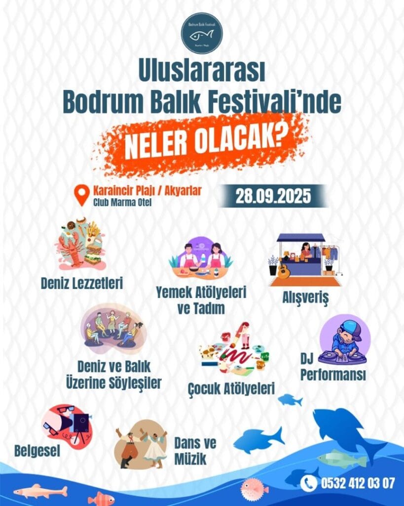 Bodrum, kültürü, gastronomisi ve denizle iç içe yaşamıyla yeni bir uluslararası etkinliğe hazırlanıyor. Uluslararası Bodrum Balık Festivali, 28 Eylül 2025 Pazar günü Akyarlar Karaincir Plajı’nda, Bodrum Marmara Koleji ve Club Marma Hotel iş birliğiyle düzenlenecek. Festival; T.C. Tarım ve Orman Bakanlığı, T.C. Kültür ve Turizm Bakanlığı, Muğla Valiliği, Muğla Büyükşehir Belediyesi, Bodrum Kaymakamlığı ve Bodrum Belediyesi başta olmak üzere birçok kurum ve kuruluşun katkılarıyla hayata geçiriliyor. Festival, balıkçılık geleneğini, deniz ürünlerini ve Ege mutfağının zenginliğini ön plana çıkaracak.