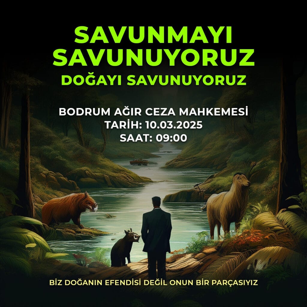 Avukat Remzi Kazmaz 10 Mart 2025 Pazartesi günü Bodrum Ağır Ceza Mahkemesi’nde yargılanıyor. Savunmayı savunmak, Doğayı Savunmak için Bodrum’da doğa severlere bir çağrı yaptı. “Biz doğanın efendisi değil onun bir parçasıyız” diyen Remzi Kazmaz’ın çağrısı şöyle;