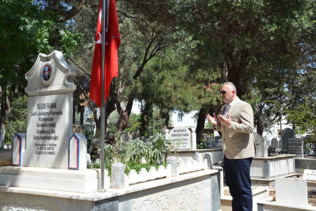 Milliyetçi Hareket Partisi (MHP) Bodrum İlçe Başkanlığı, Şehitler Haftası dolayısıyla Gümbet Türbe Camii ve şehitliği ziyaret ederek aziz şehitlerimizi dualarla andı.