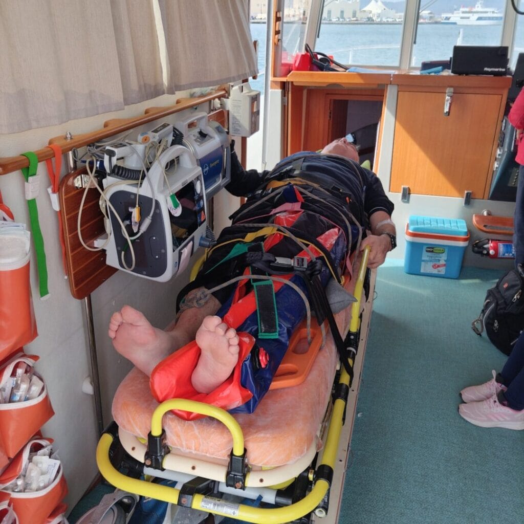 Bünyesinde bulunan tam donanımlı deniz ambulansı ile adaya ulaşan Bodrum Deniz Kurtarma Derneği ekibi, kalçasında kırıklar meydana gelen Ş.T.’yiBodrum’a getirdi.