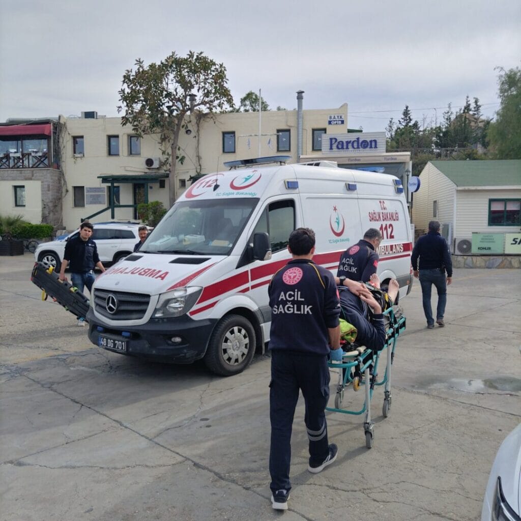 Aksam saatlerinde Bodrum Milta Marina’ya giriş yapan kurtarma ekibi yaralı Türk vatandaşını 112 Acil Sağlık ekibine teslim etti. Ş.T. ameliyata alınmak üzere Bodrum Acıbadem Hastanesine sevk edildiği öğrenildi.